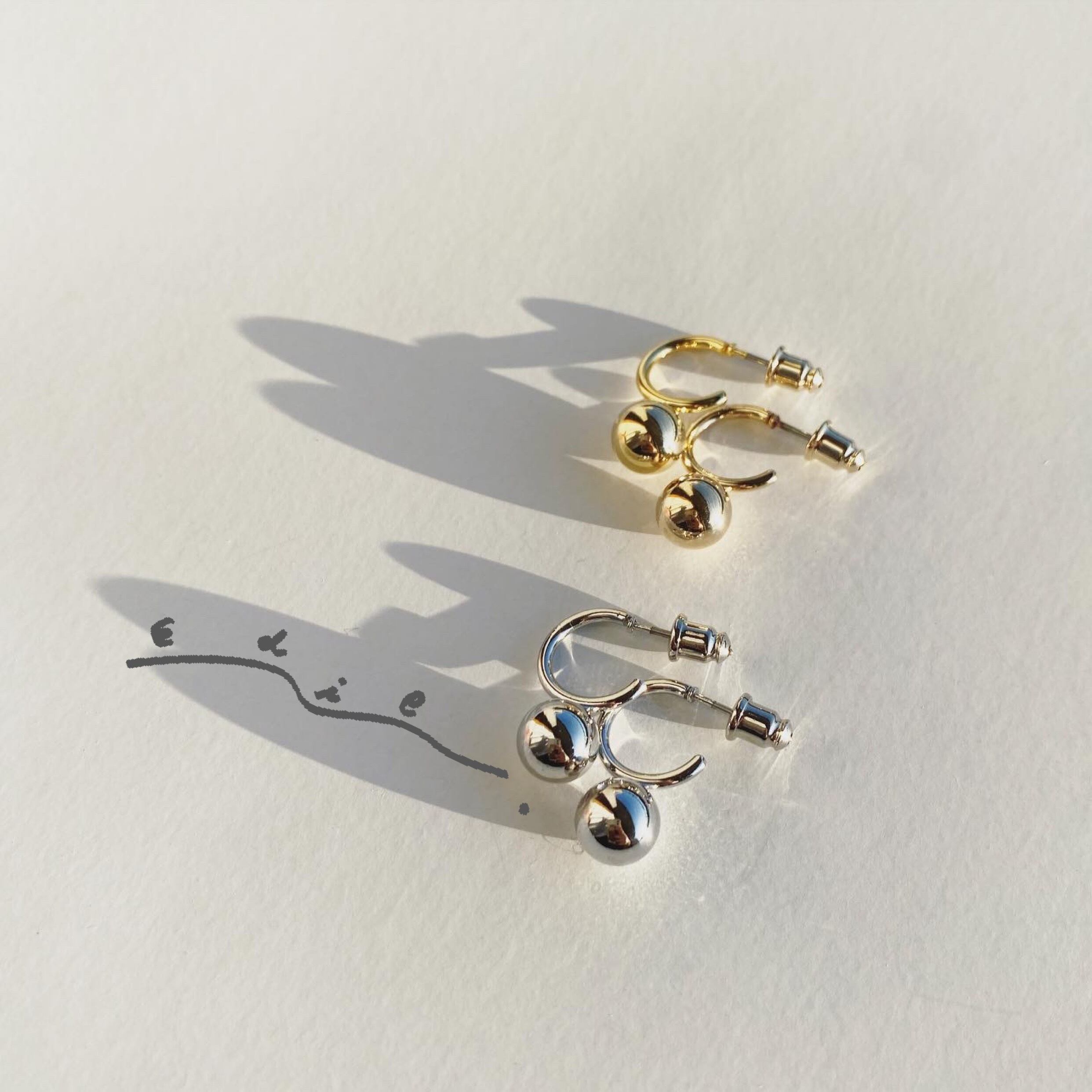 シンプルなハーフサークル型のピアスにちょこっとボールがついた存在感あるデザイン♡